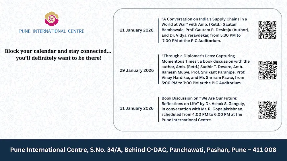 Pune International Centre (PIC) is an independent, multi-dimensional policy think tank promoting the values of the Indian Constitution and UN Charter. Its focus areas include National Security, Climate Change, Social Innovation, Science and Technology, Economic Reforms, and Urbanisation.